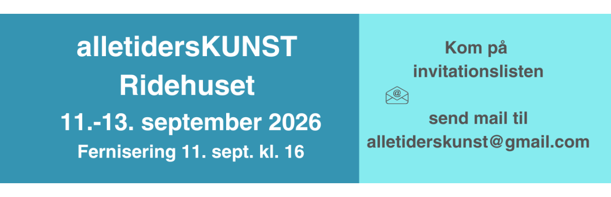 Inden længe udsender vi invitationer til årets store begivenhed - alletidersKUNST i Ridehuset i Aarhus d. 11.-13. september 2026. Har du ikke tidligere udstillet, så send os en mail på alletiderskunst@gmail.com.